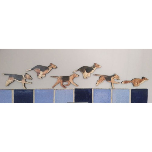 All hang up by a picture hook on the back. Hounds will be painted in a similar coat pattern to the ones in the image.