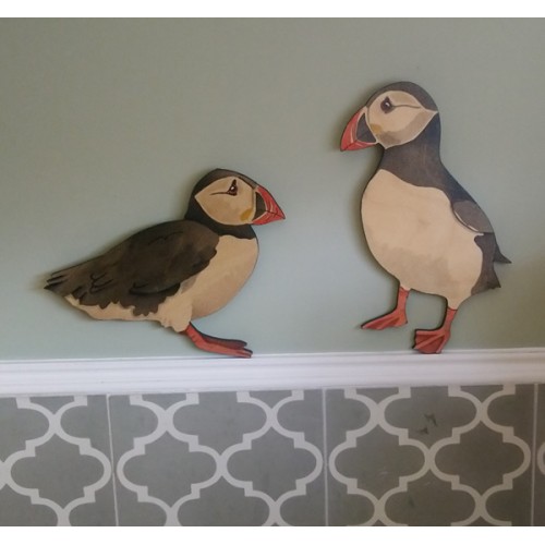 My Puffin Pair work well on a bathroom wall or on the skirting board. Also good in an office, hallway or even a kitchen.