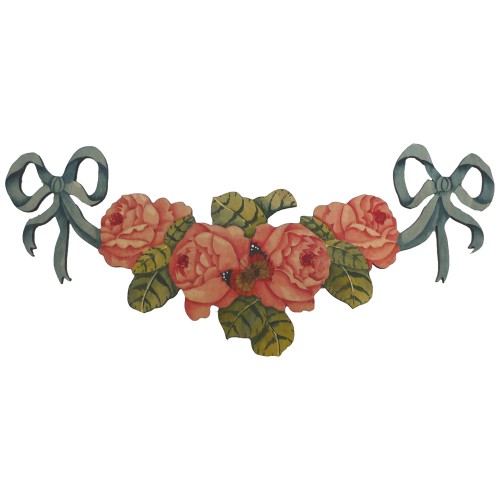 The English Rose Swag works beautifully in a kitchen, dining room or hallway, but due to its horizontal shape and delicate ribbons we feel it is especially suited above a bed.